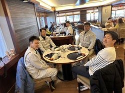 昼食は岡山プラザホテル様にてヒレカツ重をいただきました。